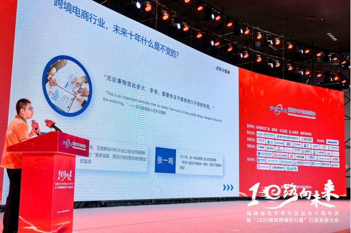 10月16日,福建省电子商务促进会十周年庆的好日子上,贸行四海创始人张伟伟有幸受邀,向大家做了《站在2025,看跨境电商下一个十年》的汇报。