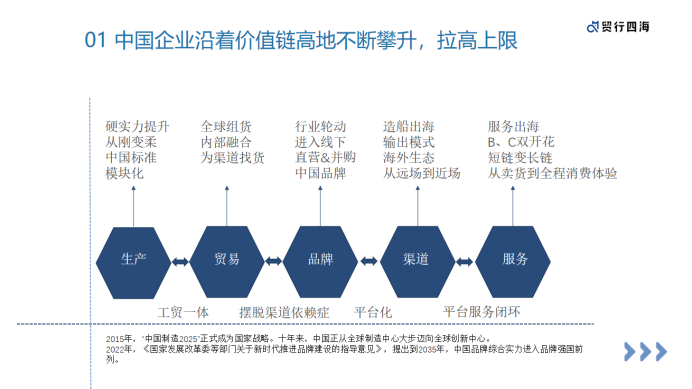 贸行四海分析认为,有六大结构性力量,值得关注。首先,是中国企业沿着价值链高地不断攀爬,将不断提升跨境电商的上限和可能性。